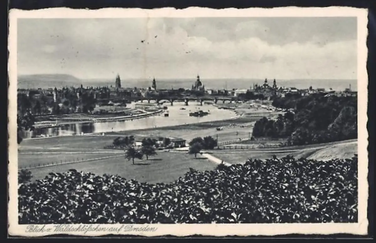 AK Dresden-Neustadt, Blick vom Waldschlösschen auf Altstadt und Elbe