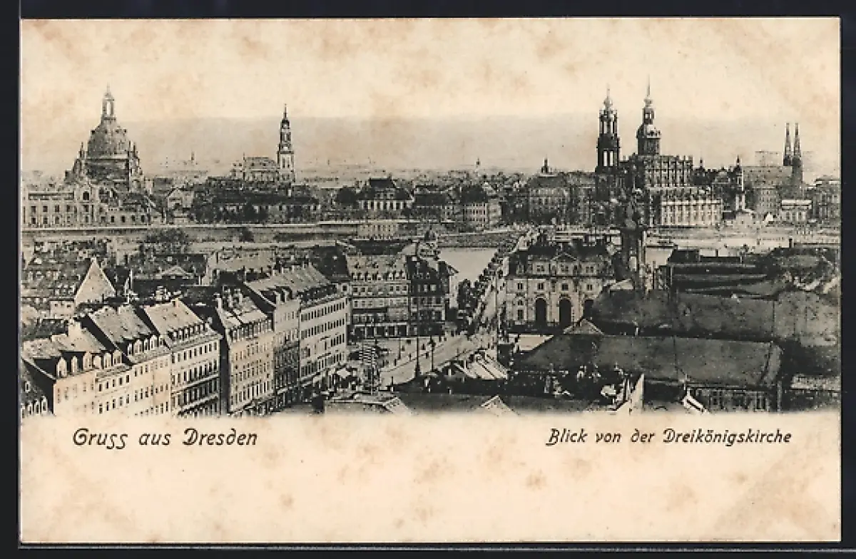 AK Dresden-Neustadt, Blick von der Dreikönigskirche auf Altstadt und Elbe