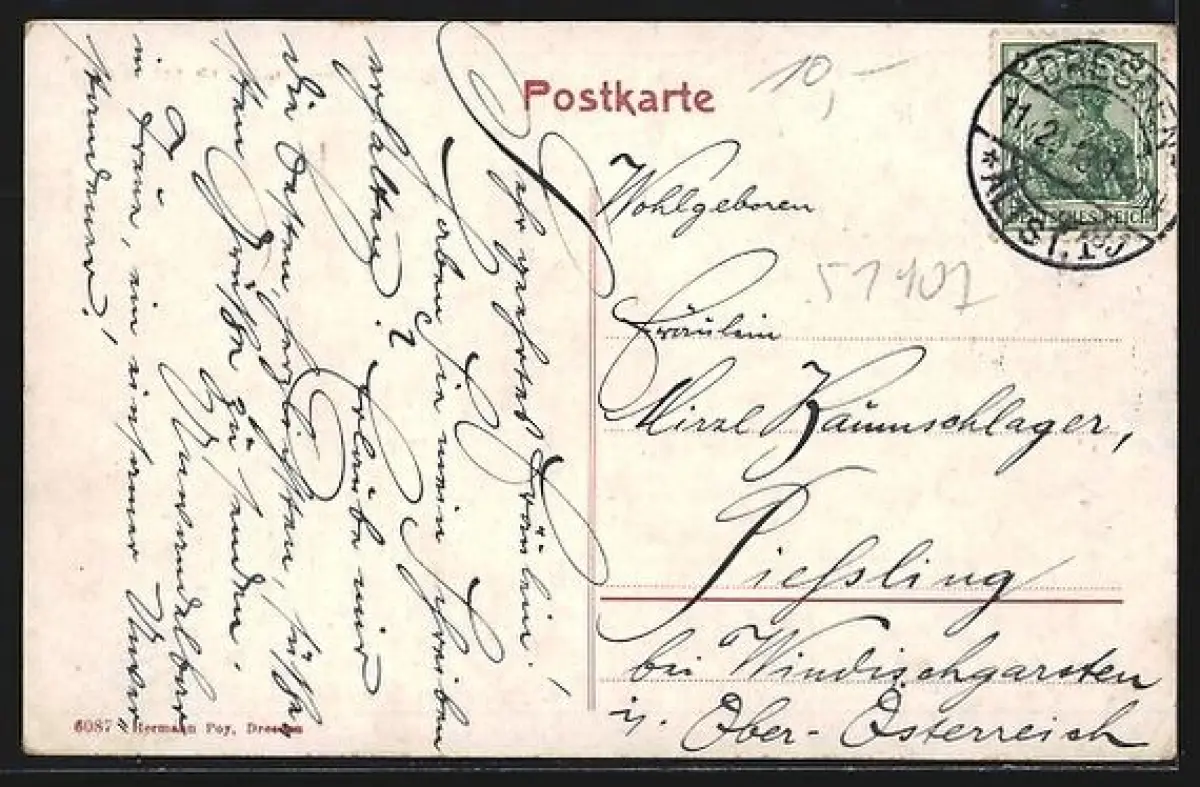 alte Ansichtskarte, gelaufen 1913, Stempelspur, guter Zustand