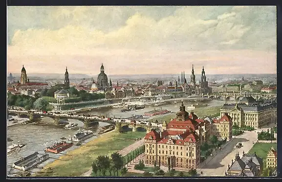 AK Dresden-Neustadt, Zeppelin-Ansicht der Ministerien u.der Altstadt