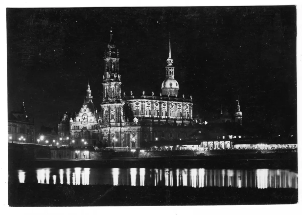 AnsichtskarteDresdenPropsteikirche und Schloß, NachtansichtAufnahme vor der Zerstörung 1945Erhaltung I-II, Beförderungsspuren