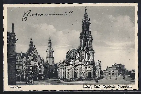 AK Dresden, Strassenpartie mit Schloss, Kath. Hofkirche und Opernhaus