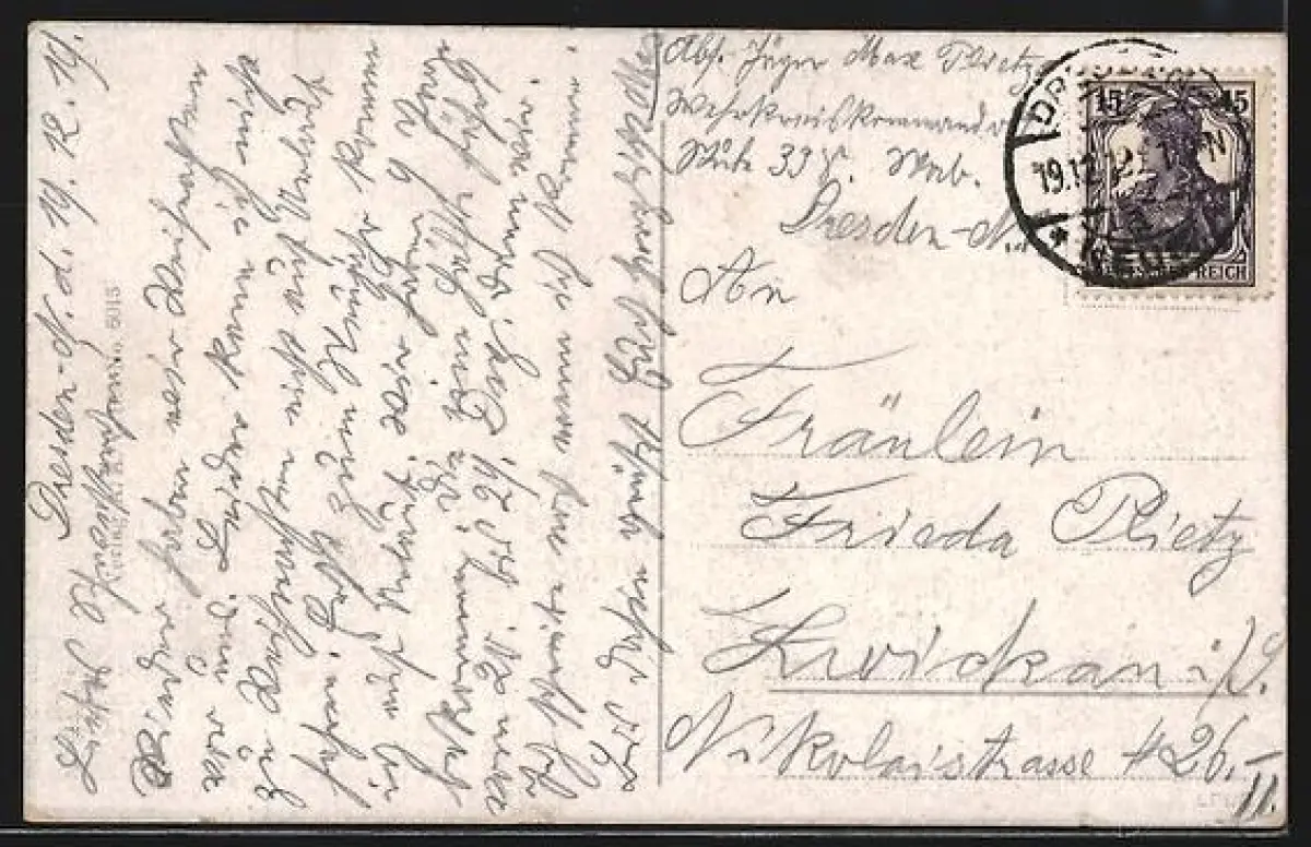 alte Ansichtskarte, gelaufen 1912, Abriebspur unten mittig, guter Zustand