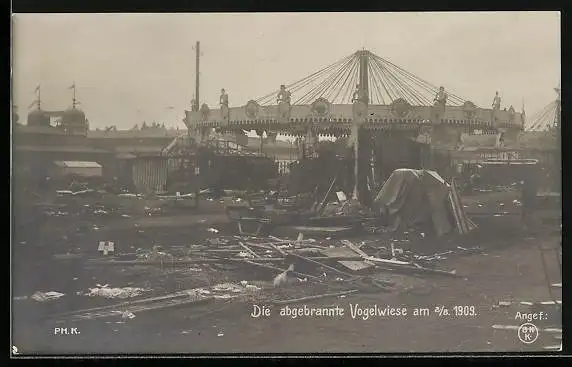 AK Dresdener Vogelwiese, abgebrannt am 2.8. 1909