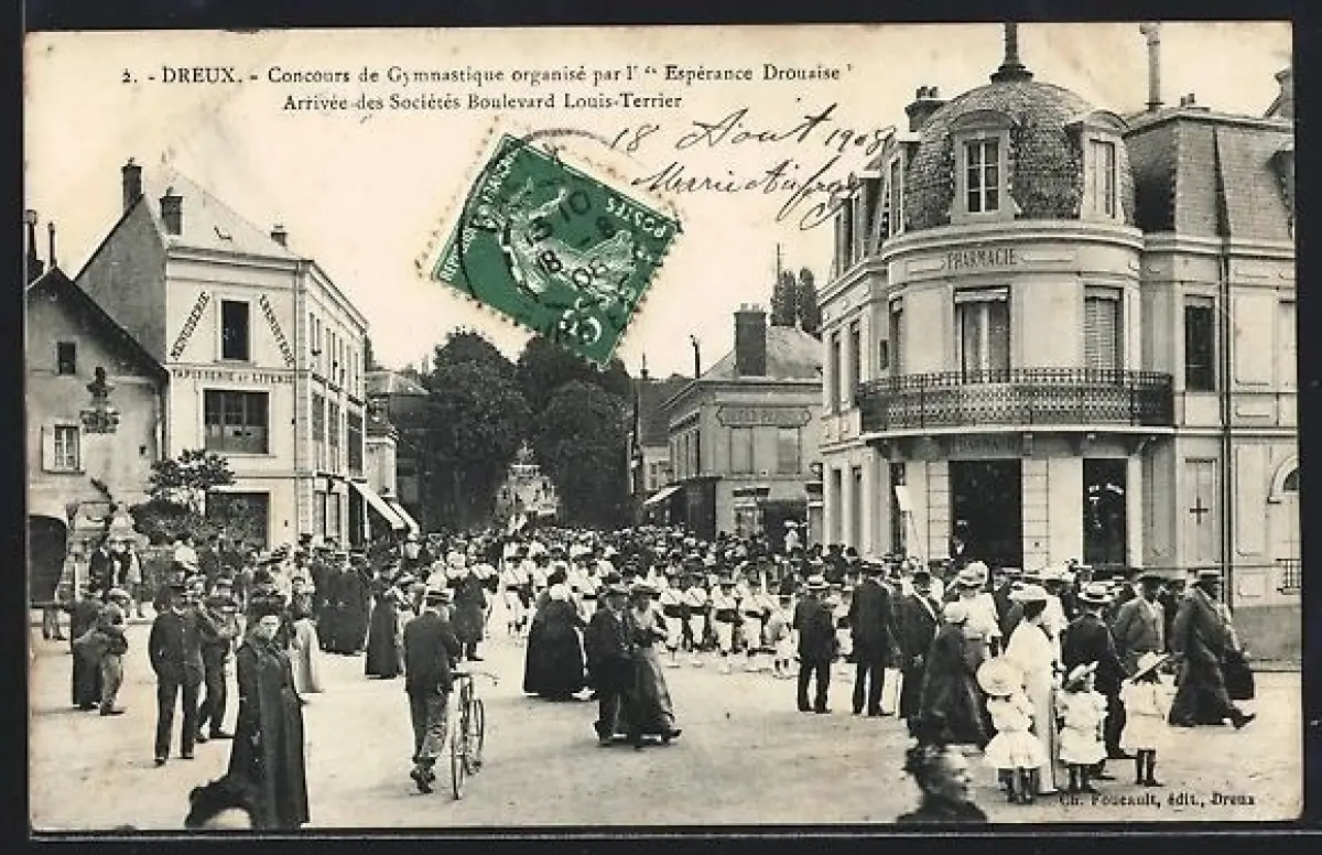 AK Dreux, Concours de Gymnastique organisé par l`Espérance Drouaise, Arrivée des Sociétés Boulevard Louis-Terrier