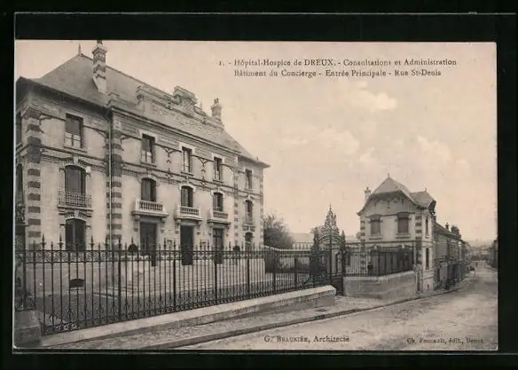 AK Dreux, Hôpital-Hospice, Consultations et Administration, Bâtiment du Concierge, Entrée Principale, Rue St-Denis