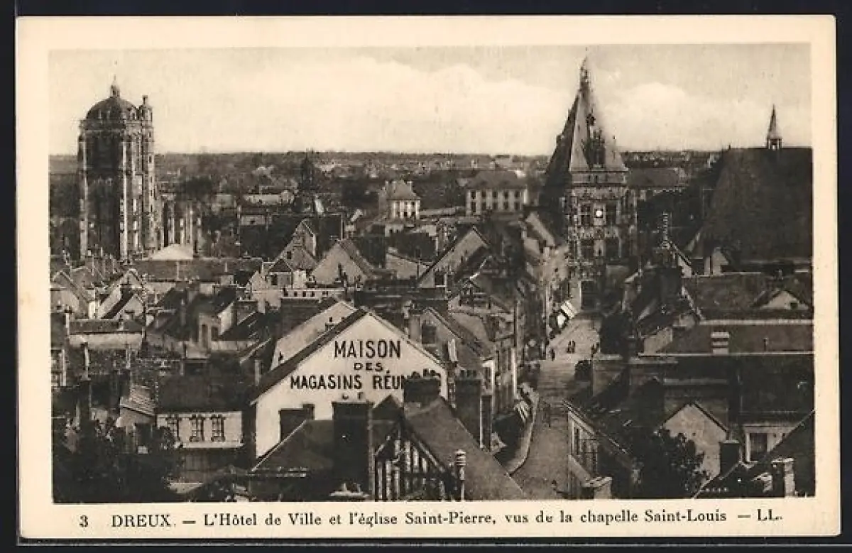 AK Dreux, L`Hôtel de Ville et l`église Saint-Pierre, vus de la chapelle Saint-Louis