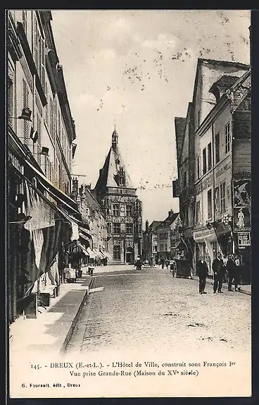 AK Dreux, L`Hôtel de Ville sous Francois Ier, vue de la Grande-Rue (Maison du XVe siècle)