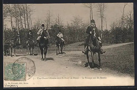 AK Dreux, Une Chasse à Courre dans la forêt de Dreux
