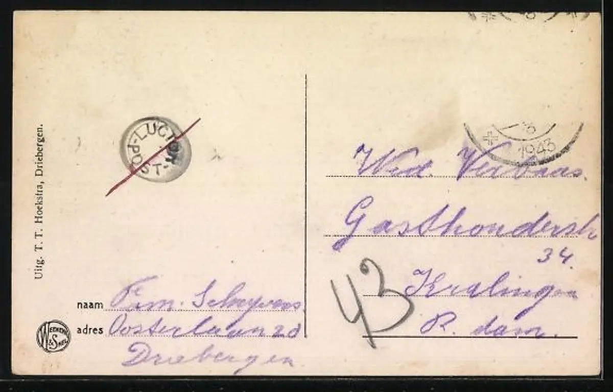 gelaufen 1943, Briefmarke entfernt, guter Zustand