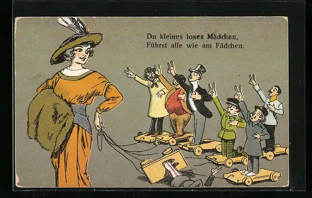 AK Du kleines loses Mädchen, führst alle wie am Fädchen, frauenfeindlicher Humor