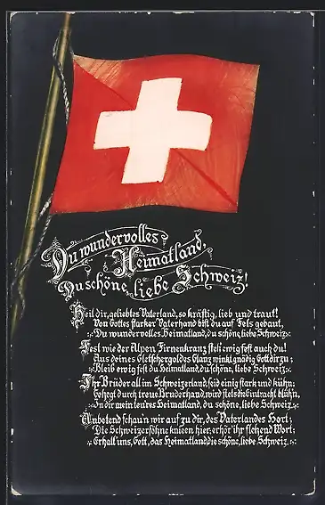 AK Du wundervolles Heimatland, Gedicht, Schweizer Fahne