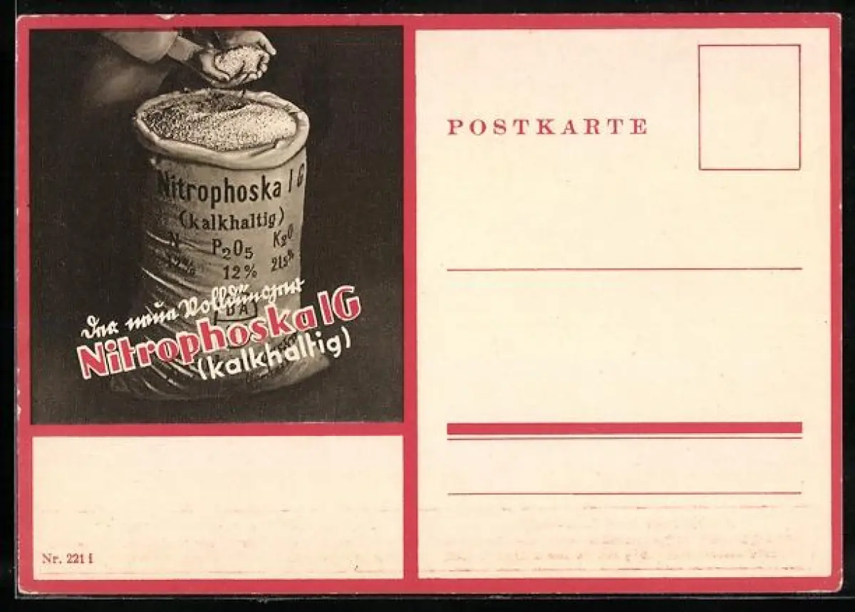 AK Düngemittel-Reklame, Sack mit Nitrophosphat IG (kalkhaltig)