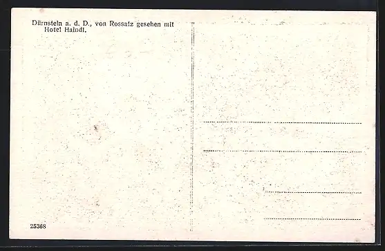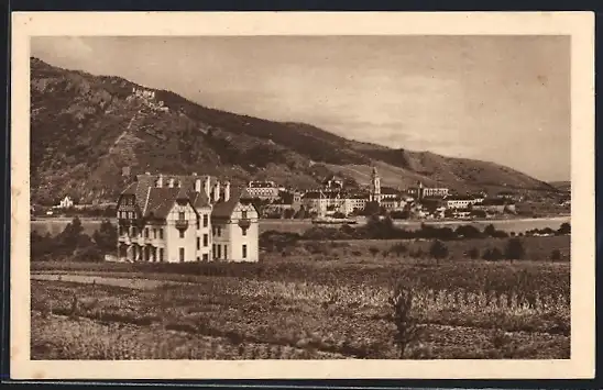 AK Dürnstein a.d. Donau, Ortsansicht mit Hotel Haindl von Rossatz gesehen