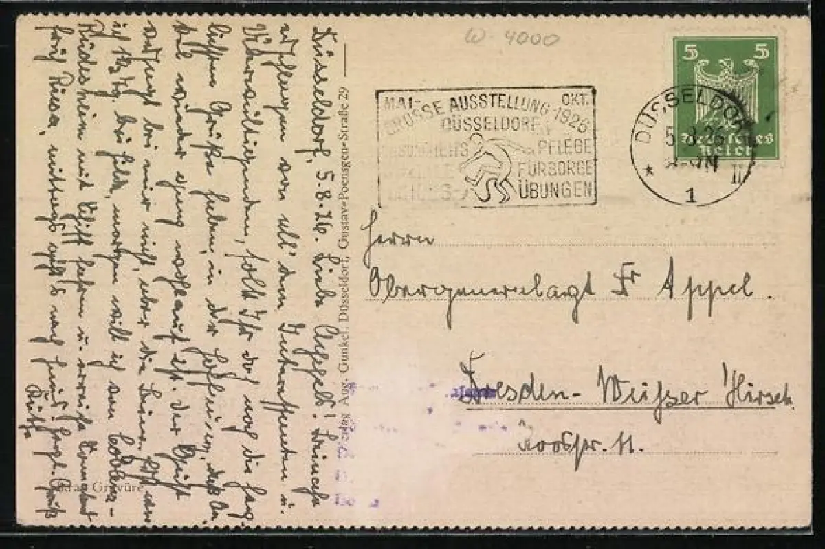 gelaufen 1926, Eckknick li. unten, rückseitig Oberflächenschaden, guter Zustand