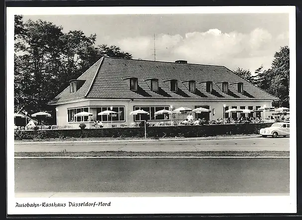 AK Düsseldorf, Autobahn-Rasthaus von der Strasse aus