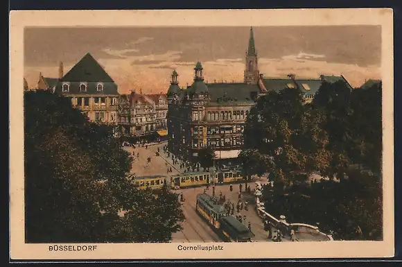 AK Düsseldorf, Corneliusplatz aus der Vogelschau mit Strassenbahn