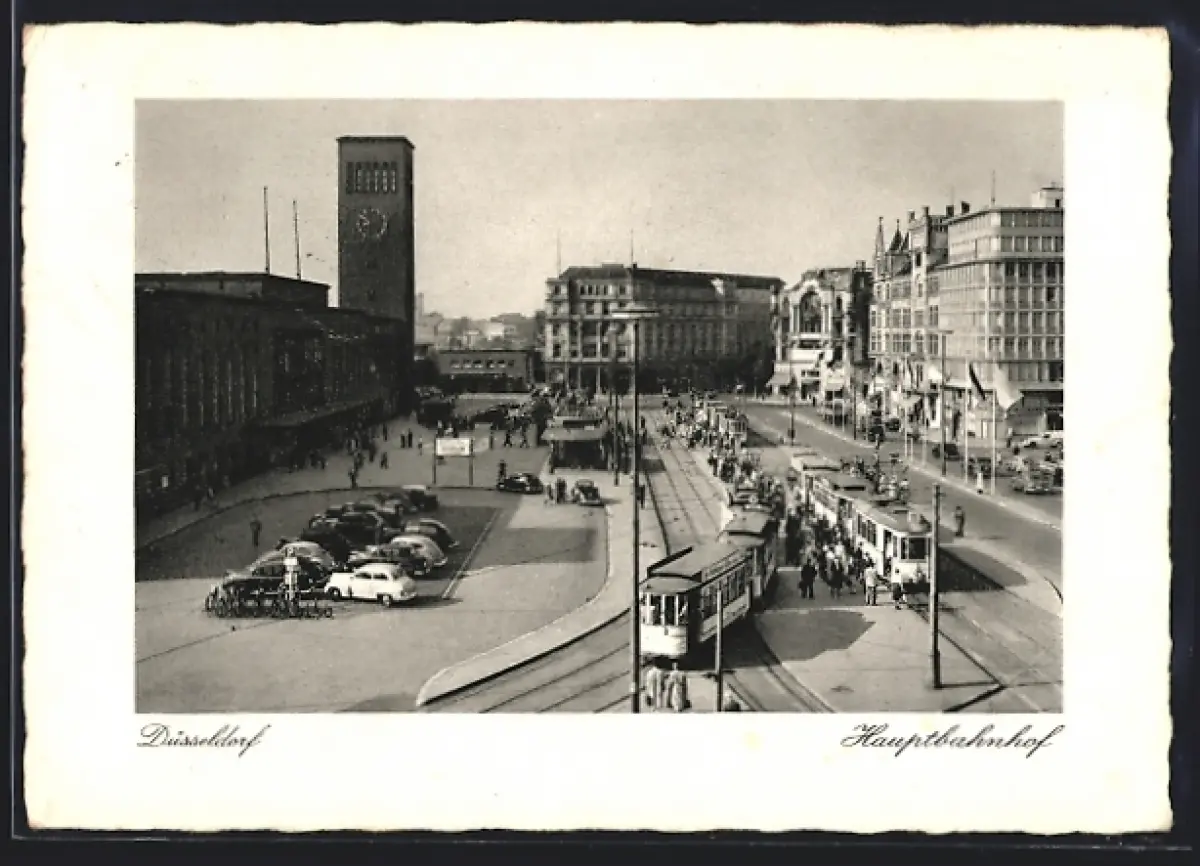 AK Düsseldorf, Hauptbahnhof mit Strassenbahn