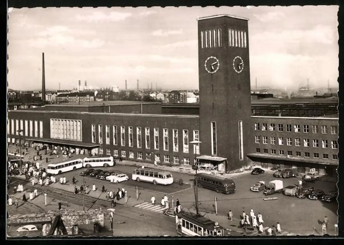 AK Düsseldorf, Hauptbahnhof mit Vorplatz aus der Vogelschau