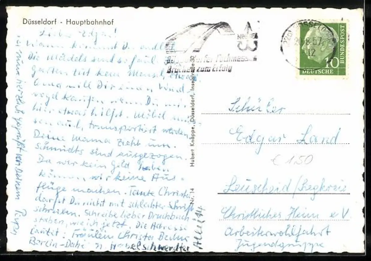 alte Ansichtskarte, gelaufen, Eckknicke oben u. li., kl. Einriss unten li., guter Zustand