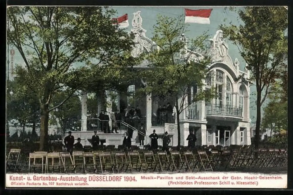 AK Düsseldorf, Internationale Kunst-Historische Gartenbau-Ausstellung 1904, Musikpavillon und Sektausschank