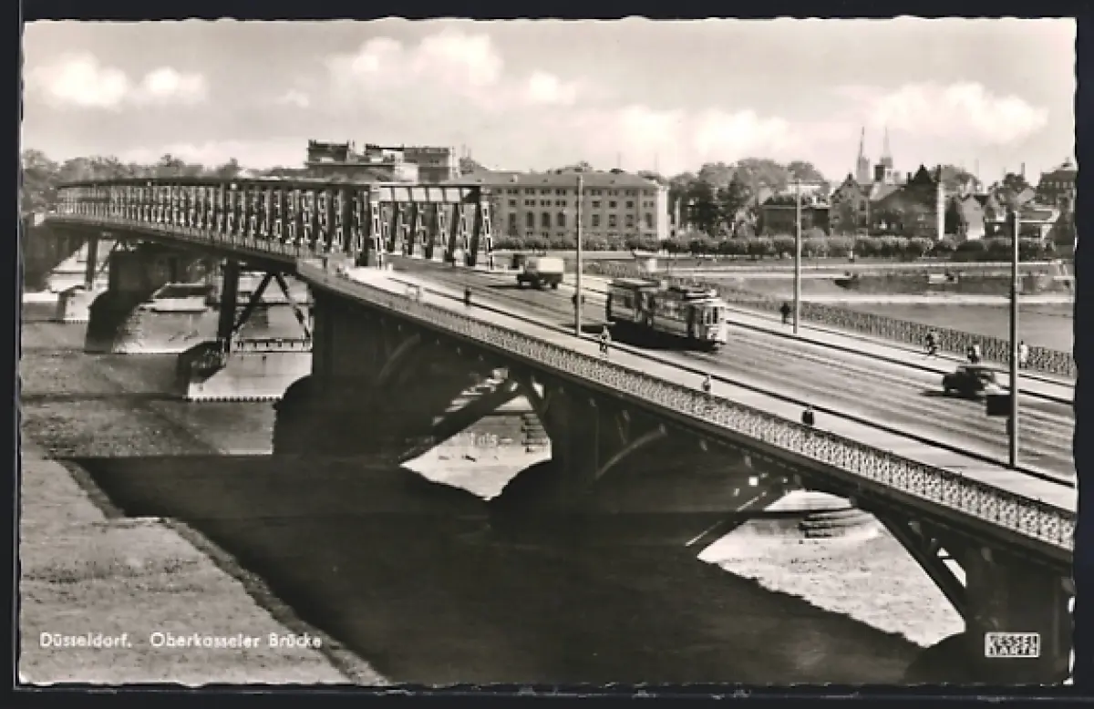 AK Düsseldorf, Oberkasseler Brücke mit Strassenbahn