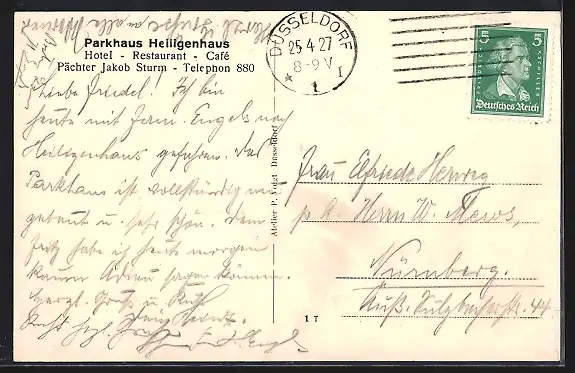 alte Ansichtskarte, gelaufen 1927, Eckknick unten li., guter Zustand