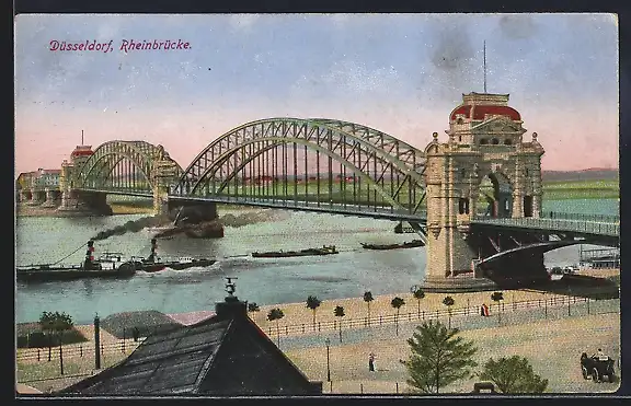 AK Düsseldorf, Rheinbrücke mit Dampfer