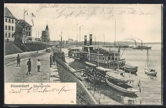 AK Düsseldorf, Rheinpartie mit Dampfern an der Anlegestelle