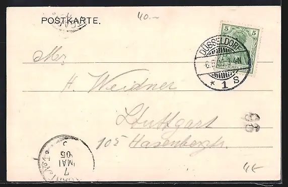 alte Ansichtskarte, gelaufen 1905, Eckknick unten li., guter Zustand