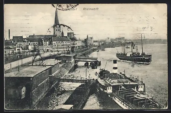 AK Düsseldorf, Rheinwerft mit Dampfern