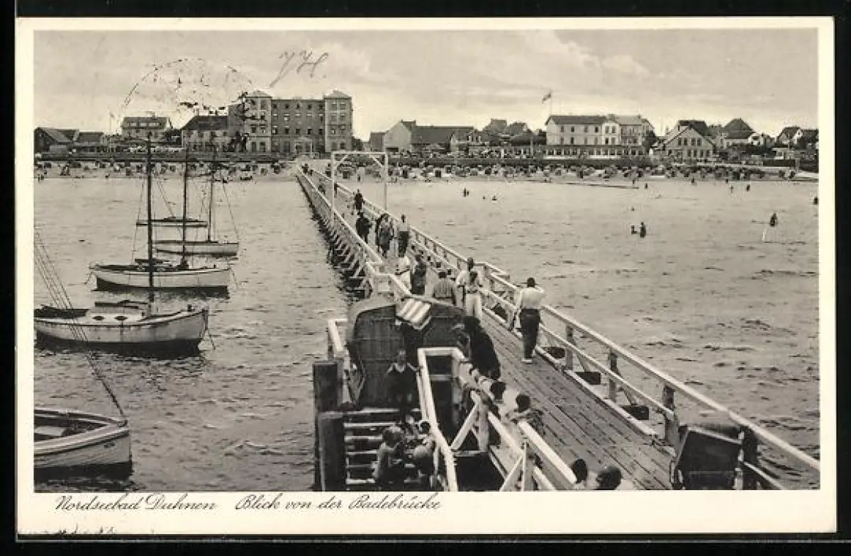 AK Duhnen, Blick von der Badebrücke in Richtung der Strandpartie