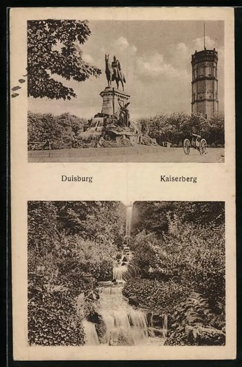 AK Duisburg, Kaiserberg, Reiterdenkmal, Turm, Wasserfall