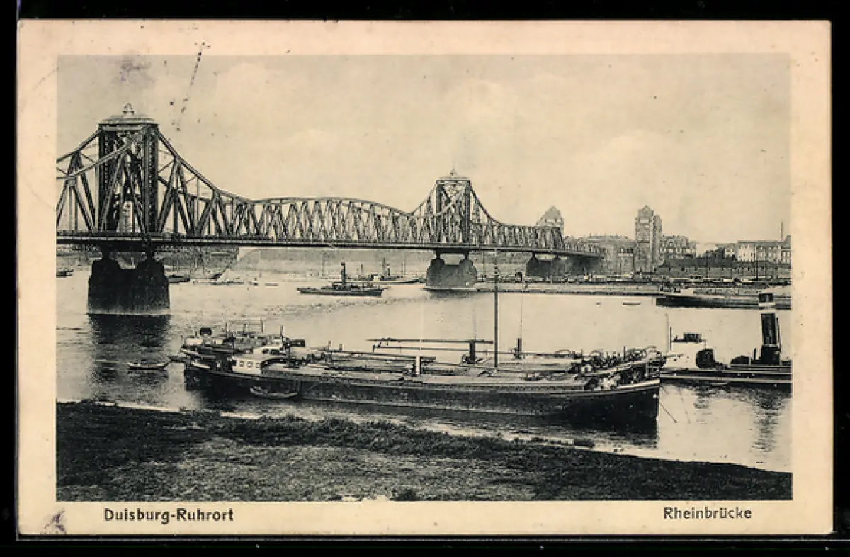 AK Duisburg-Ruhrort, Rheinbrücke, Schiffe