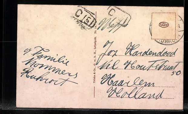 alte Ansichtskarte, gelaufen, Briefmarke entfernt, guter Zustand