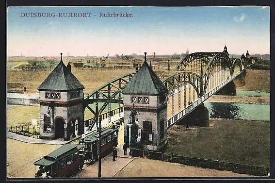 AK Duisburg-Ruhrort, Ruhrbrücke mit Strassenbahn