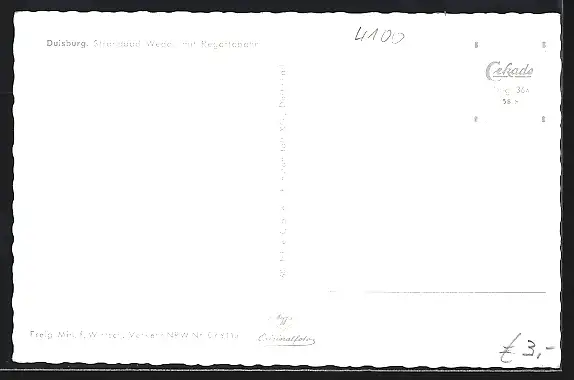 Personenbezogene Daten auf der Rückseite der Karte wurden durch blauen Textmarker unkenntlich gemacht. Die blauen Stellen sind auf die Vorderseite durchgeweicht und wirken sich negativ auf das Postkartenfoto aus