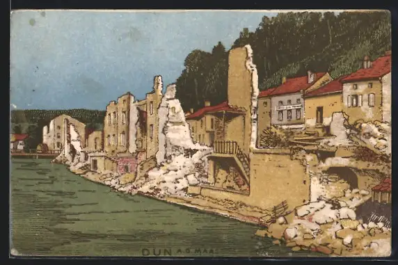 AK Dun a. d. Maas, Die Ruinen der zerstörten Häuser