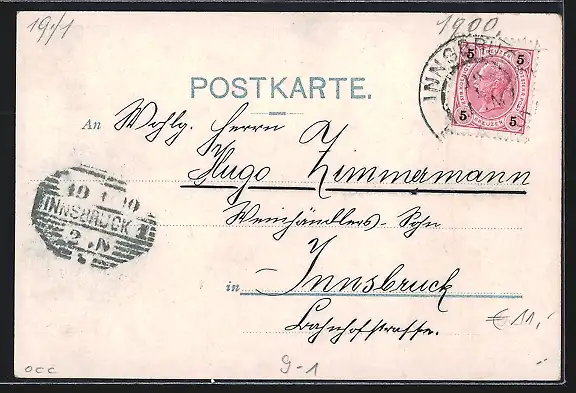 alte Ansichtskarte, gelaufen 1900, guter Zustand