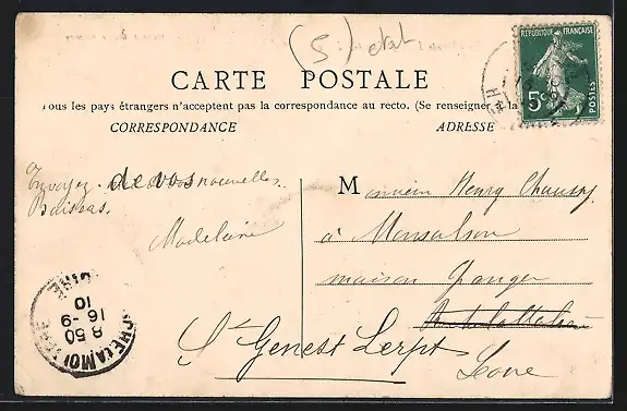 alte Ansichtskarte, gelaufen 1910, Eckknick unten rechts, guter Zustand