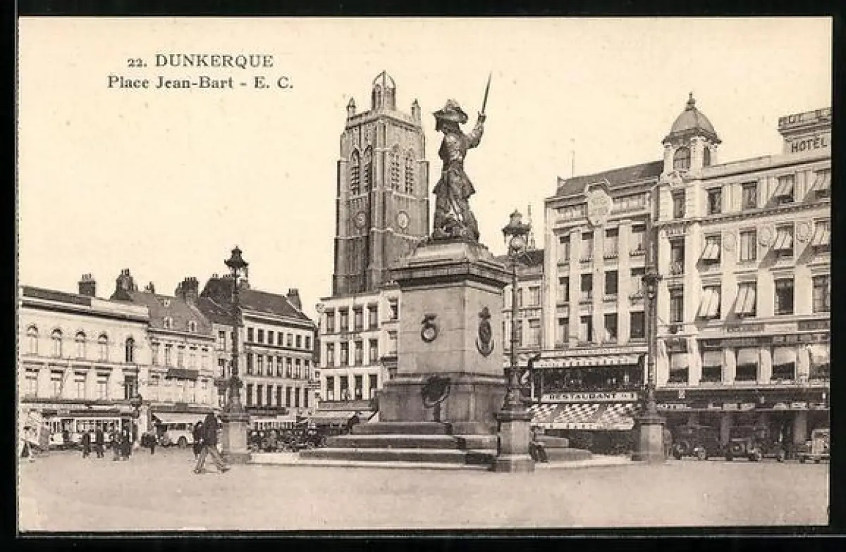 AK Dunkerque, Place Jean-Bart, Strassenbahn