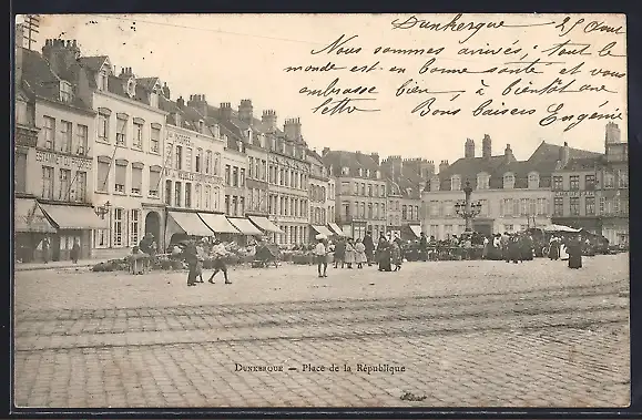 AK Dunkerque, Place de la République animée avec foule et bâtiments historiques