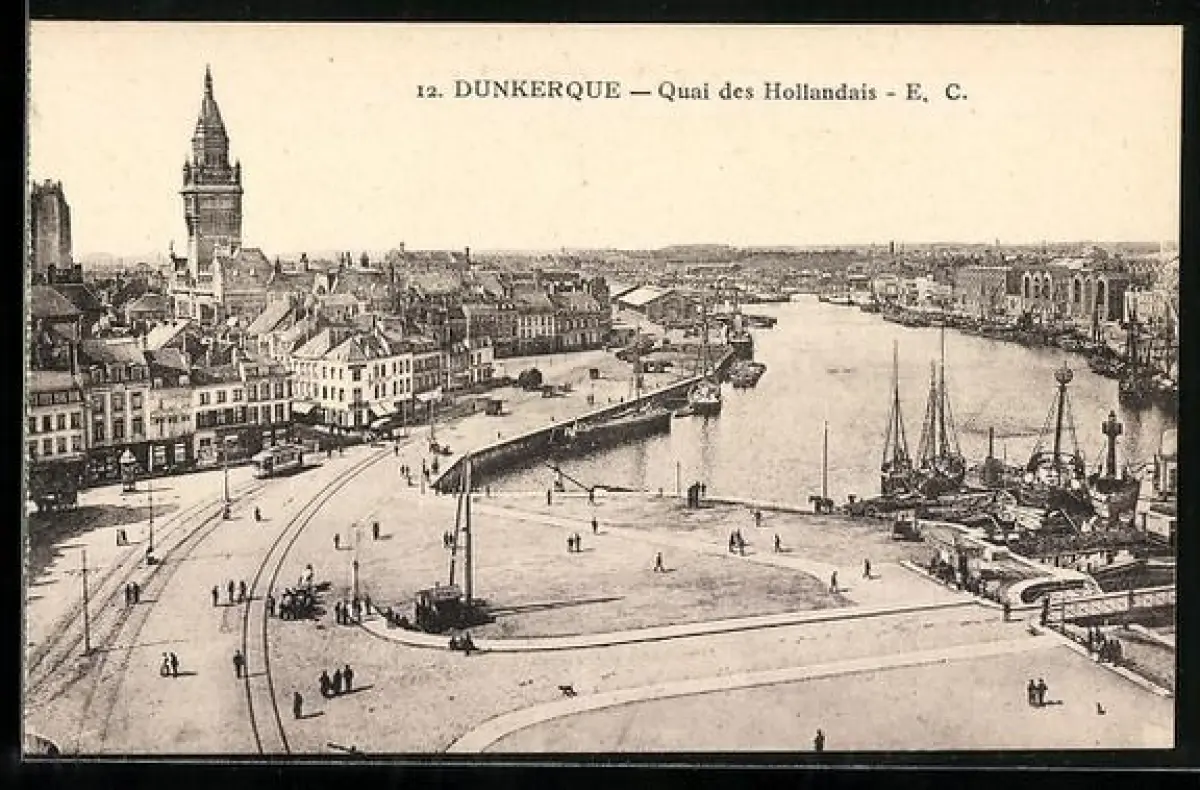 AK Dunkerque, Quai des Hollandais, Strassenbahn