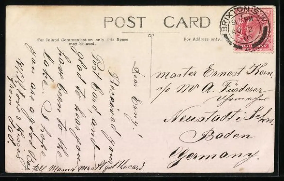 alte Ansichtskarte, gelaufen 1910, guter Zustand