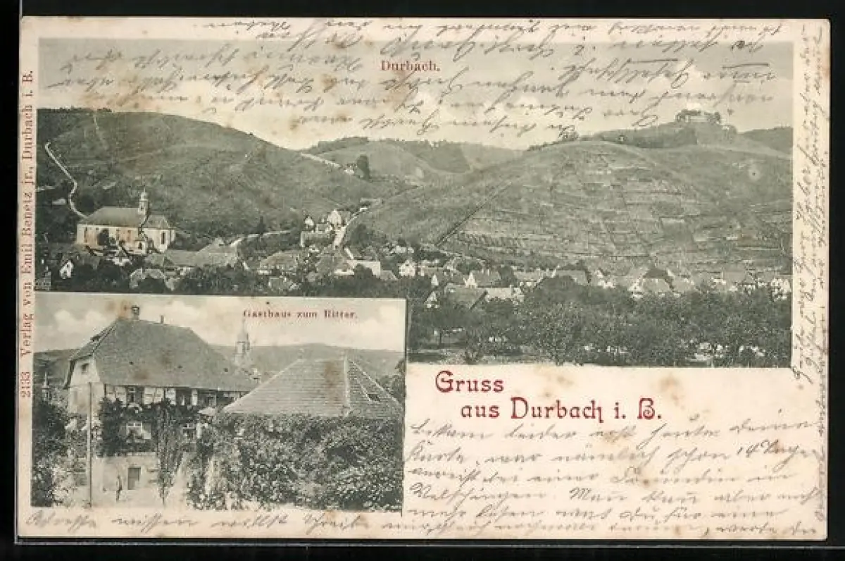 AK Durbach i. B., Ortsansicht aus der Vogelschau, Gasthaus zum Ritter