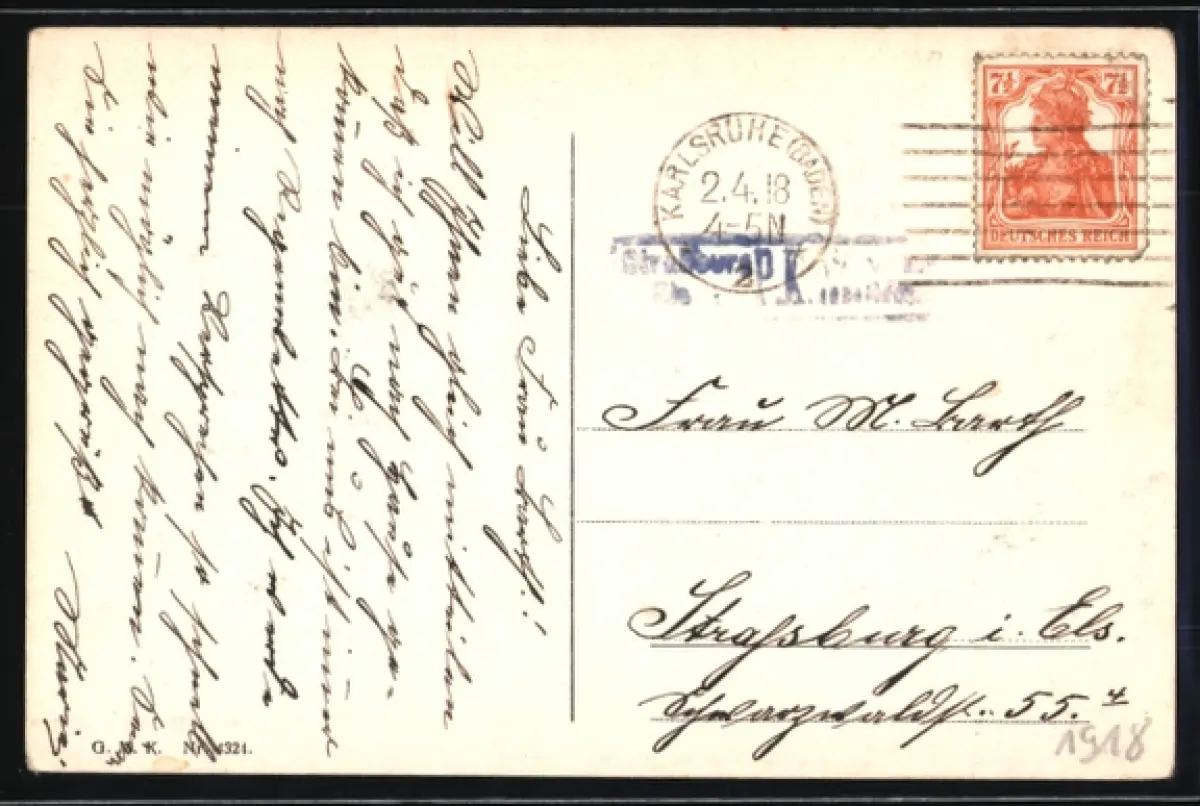 alte Ansichtskarte, gelaufen 1918, Stempelspur, guter Zustand