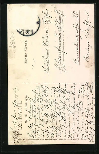 alte Ansichtskarte, gelaufen, Briefmarke entfernt, rückseitig Oberflächenschaden, Stempelspur, guter Zustand