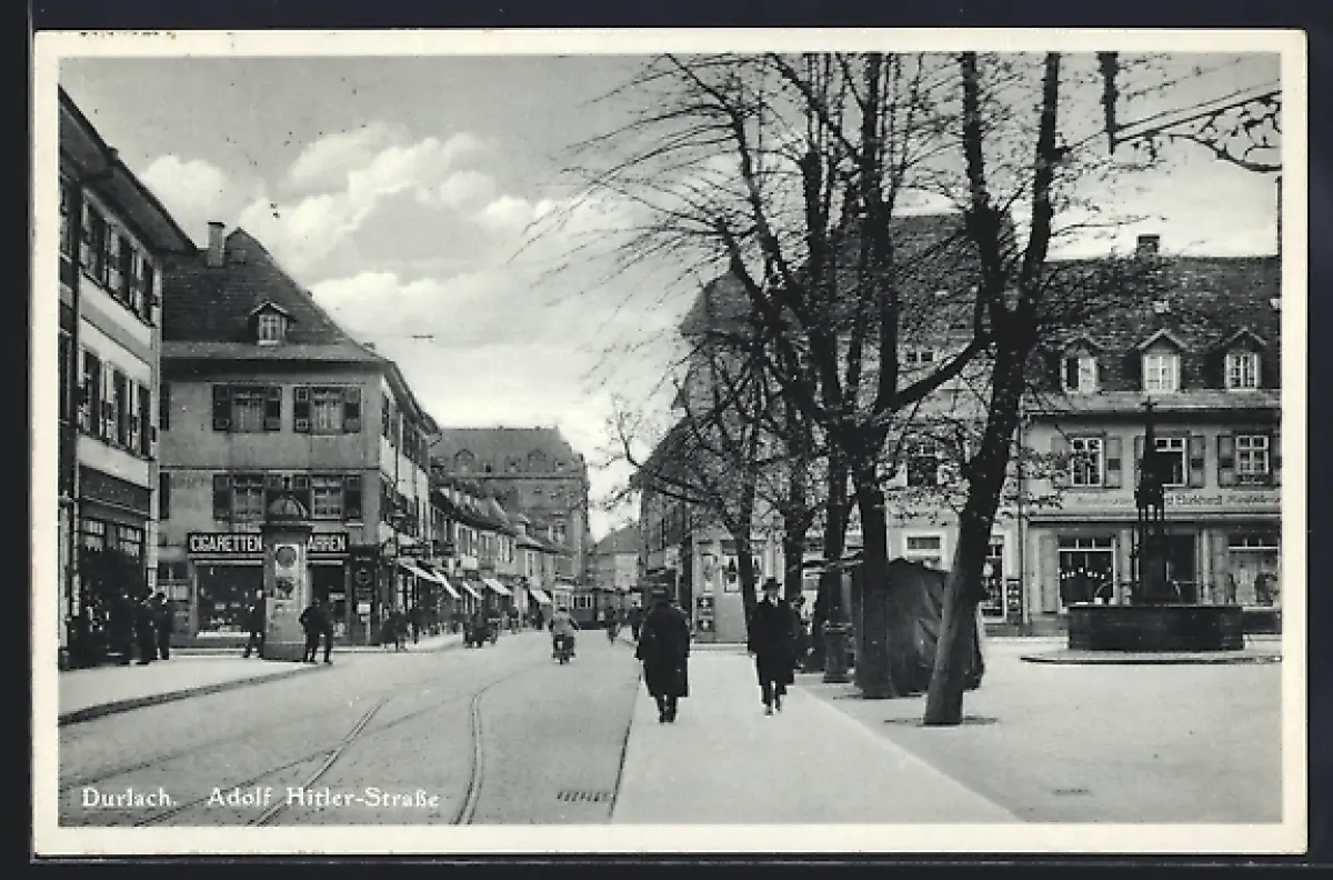 AK Durlach, Strasse mit Säulendenkmal, Kreuzung, Litfasssäule