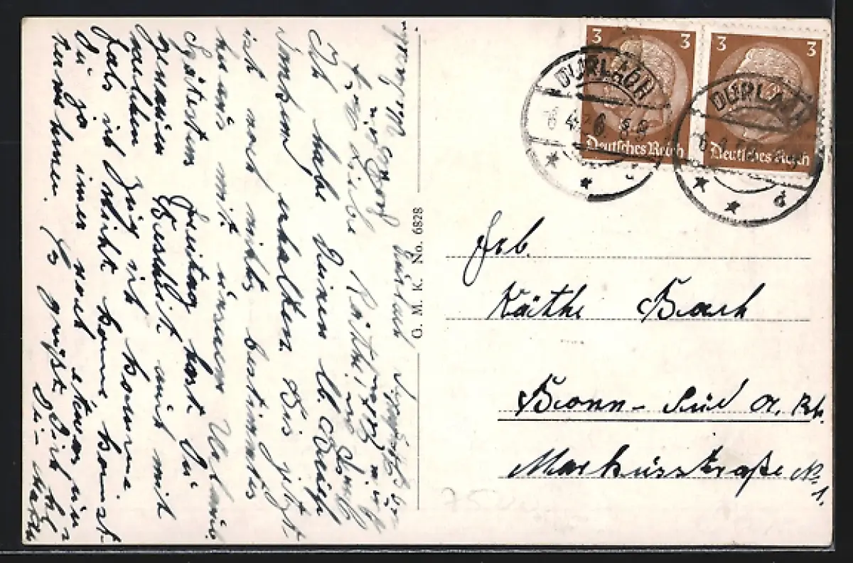 alte Ansichtskarte, gelaufen, Stempelspur, guter Zustand