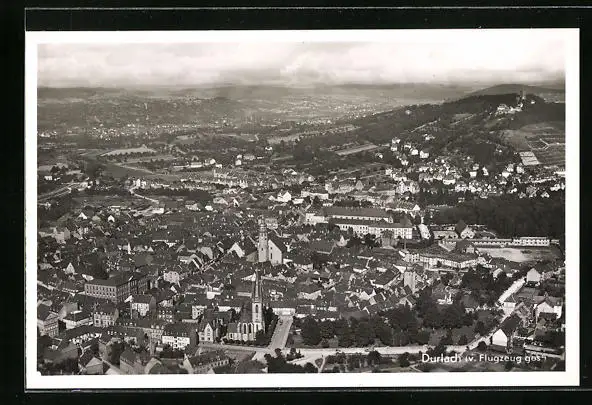 AK Durlach, Totalansicht aus der Vogelschau, Fliegeraufnahme